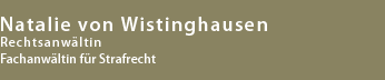 Natalie von Wistinghausen Fachanwältin für Strafrecht Tätigkeitsschwerpunkte: